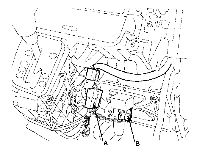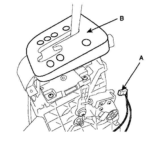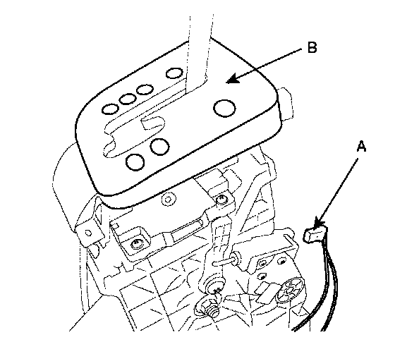 2. Disconnect the solenoid connector (A) and remove the indicator panel (B).