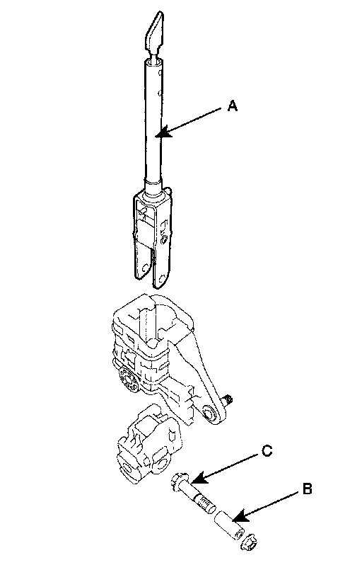 6. Remove the lever (A) and tube (B) by removing the bolt (C).