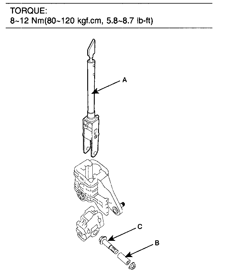 1. Grease the tube (B) and install the lever (A) by tightening the bolt (C).