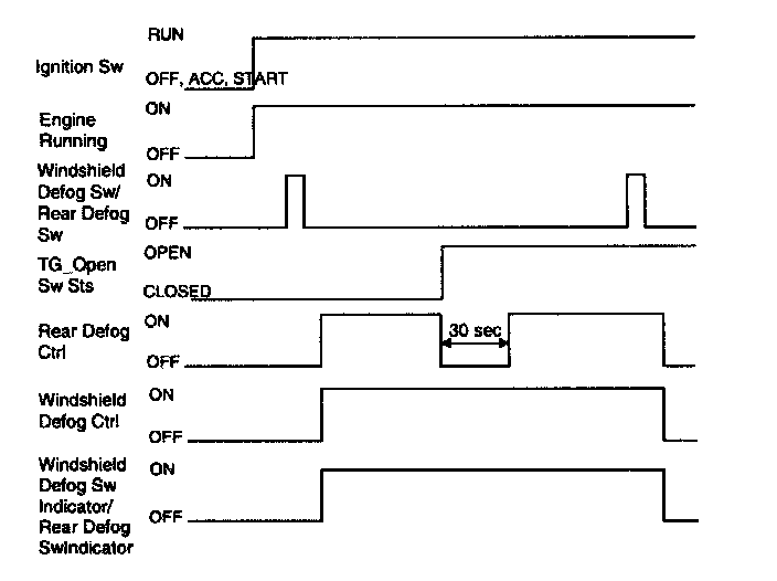 If the user turns on rear defog function while this pause is going on, rear defog is set to ON only at the end of the pause.