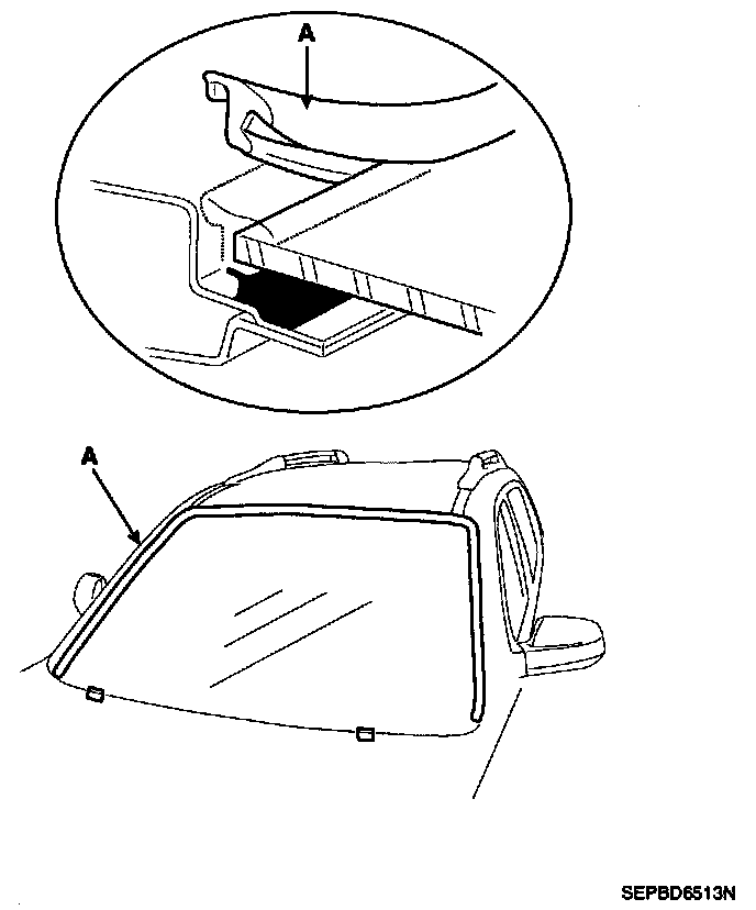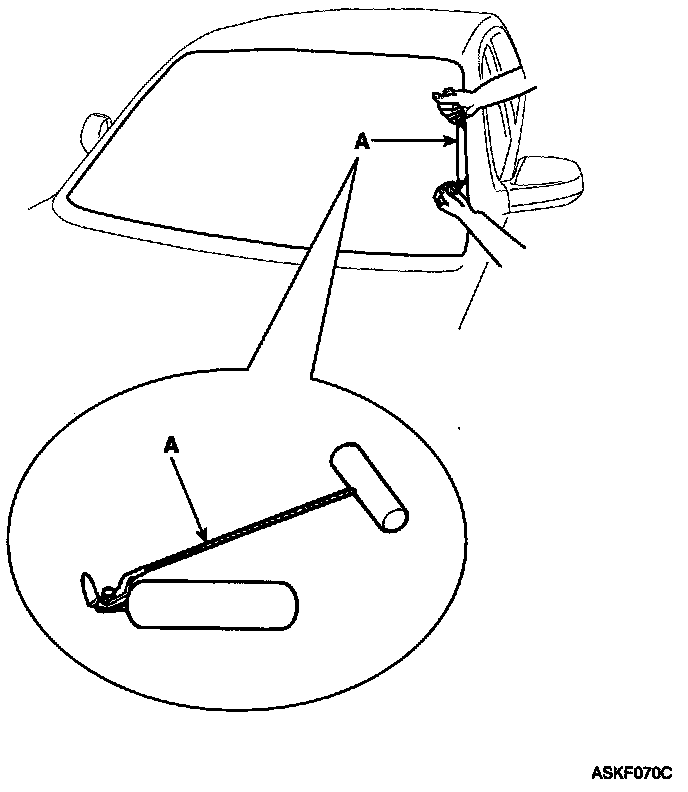 2. Remove the windshield glass side molding(A).