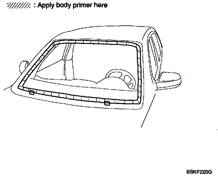 - Never touch the primed surface with your hand. If you do, the adhesive may not bond to the glass Properly, causing a leak after the windshield glass is installed.