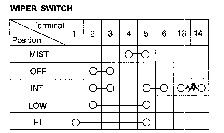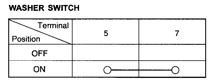 Check for continuity between the terminals while operating the wiper and washer switch. If it is not normal condition, replace wiper and wiper switch.