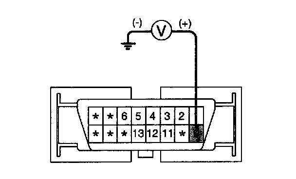 Measure the voltage between terminal 9 of the data link connector and body ground.