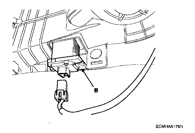 2. Disconnect the power mosfet connector (A) at the connecting part between heater and blower unit.