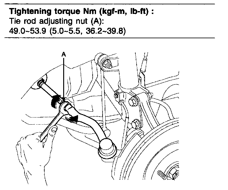 ^ Toe-in adjustment should be made by turning the right and left tie rods at the same amount.