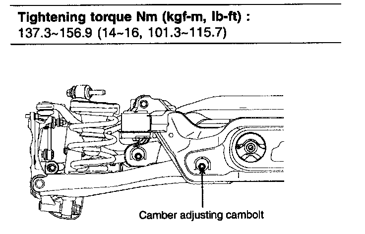 Adjust the camber by turning the cambolt of the rear lower arm.