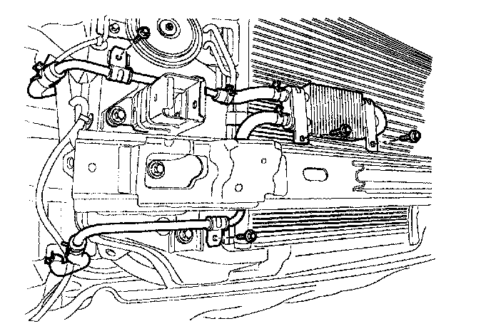 6. Remove the front bumper and then loosen the cooler tube bracket bolts.