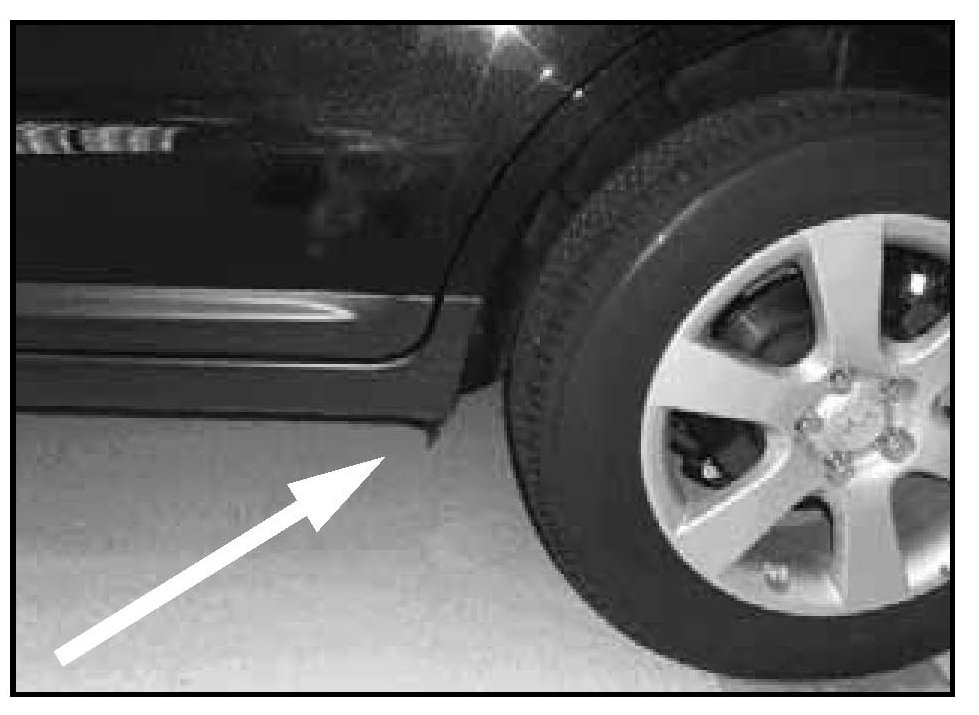 1. Proceed to the Driver's side (LH) rear wheel. Look under the vehicle in front of the rear wheel and locate the fuel filler neck on the fuel tank.