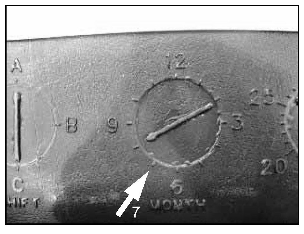 7. If the month IS pointing to the 7 and no green mark is present as described above, proceed to step 8.