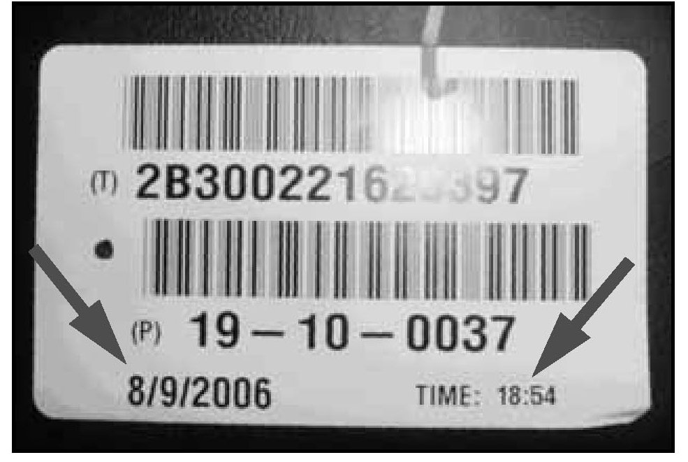 14. If the date is 7/28/2006 with a time stamp after 08:22 or anytime on 712912006 the tank will need to be replaced. Continue to the Part Replacement section (beginning with step 17) below for the proper procedure. If vehicle needs replacement of tank, immediately order part as shown under Parts Information.