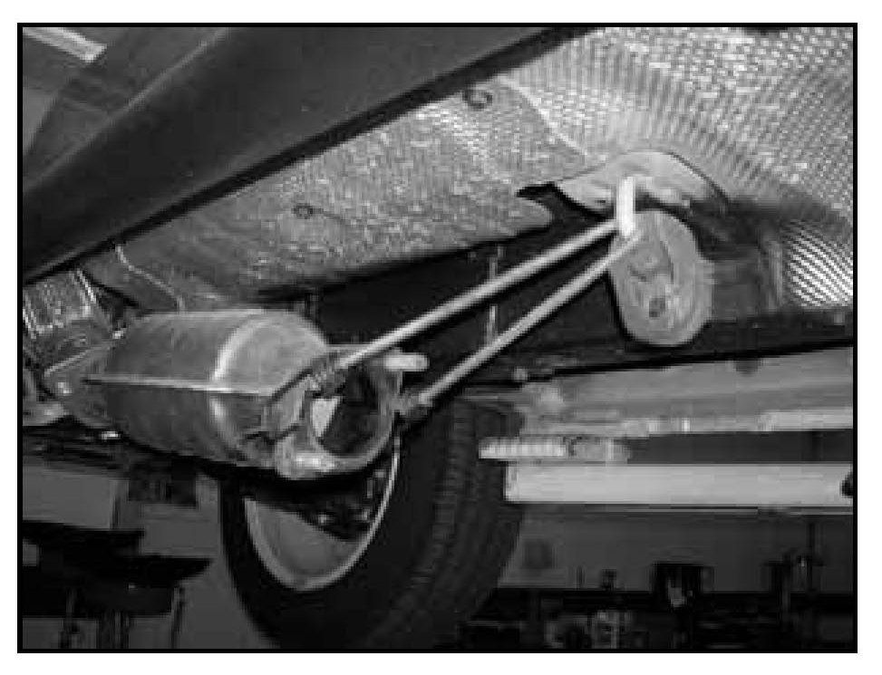 29. Remove the exhaust mid-pipe from the resonator to the mufflers. Take care to not misplace the exhaust gaskets. Tightening torque: 49Nm, 36Lb-ft