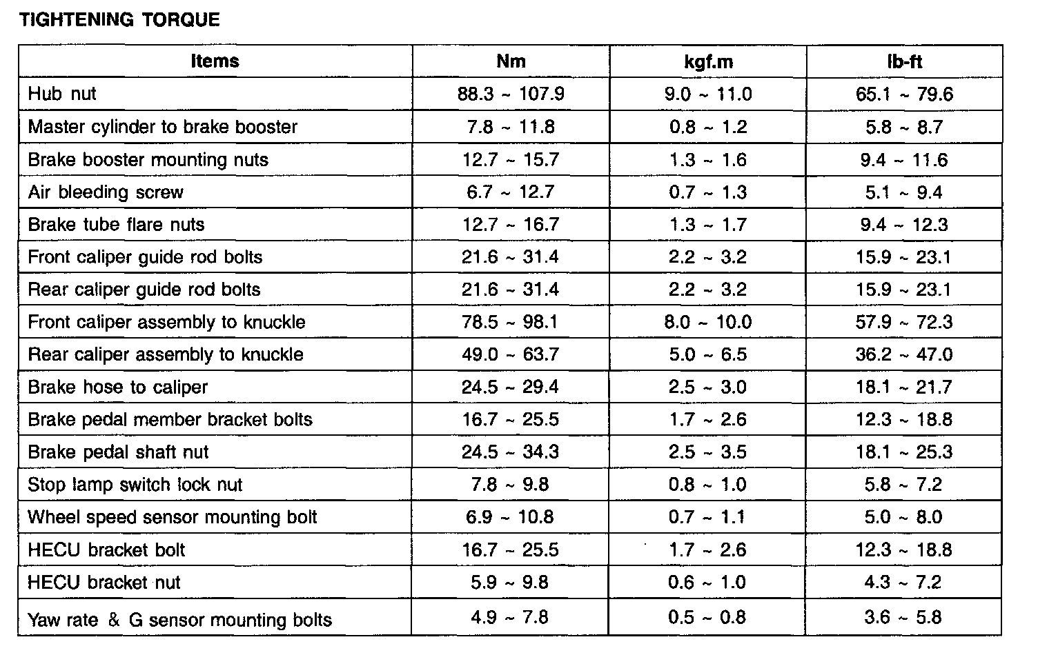 TIGHTENING TORQUE: