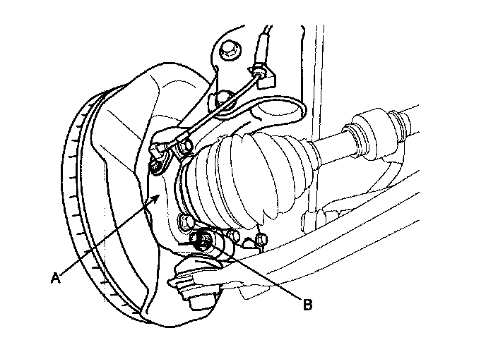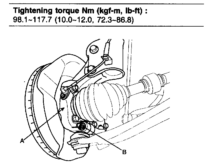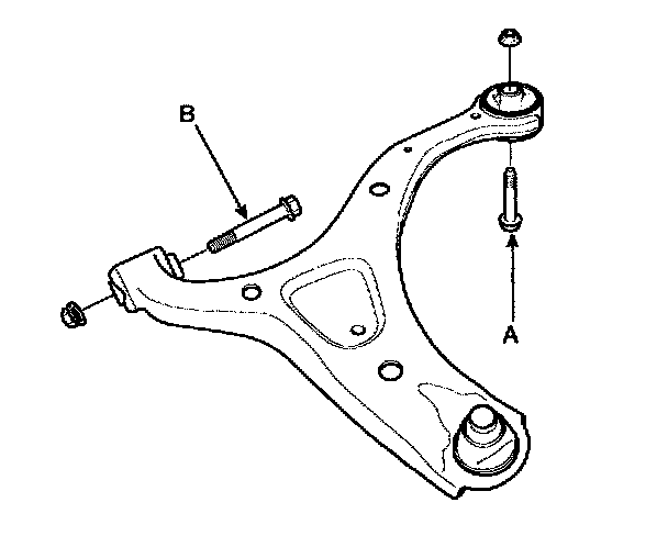 4. Remove the lower arm mounting bolts (A,B) and then remove the lower arm.