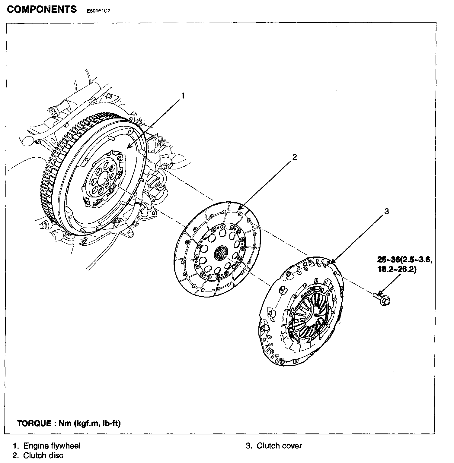 3. Remove the clutch cover and disc.