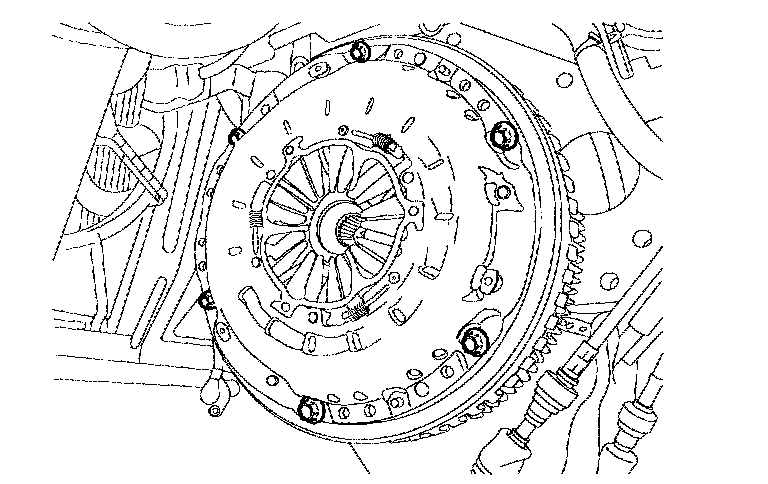 2. Remove the clutch cover bolts. Not to be bent or twisted, loosen them in diagonal directions.