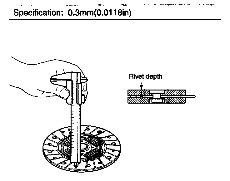 4. Measure the depth from a clutch lining surface to a rivet. If the measured value is less than the specification below, replace it.