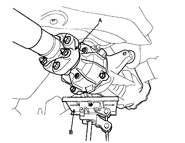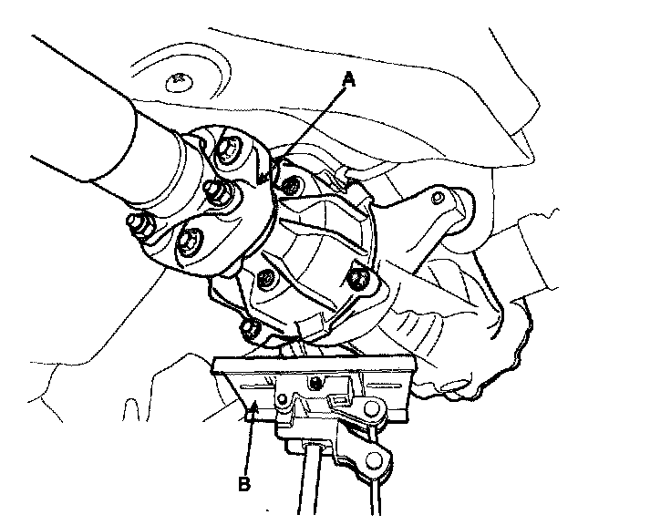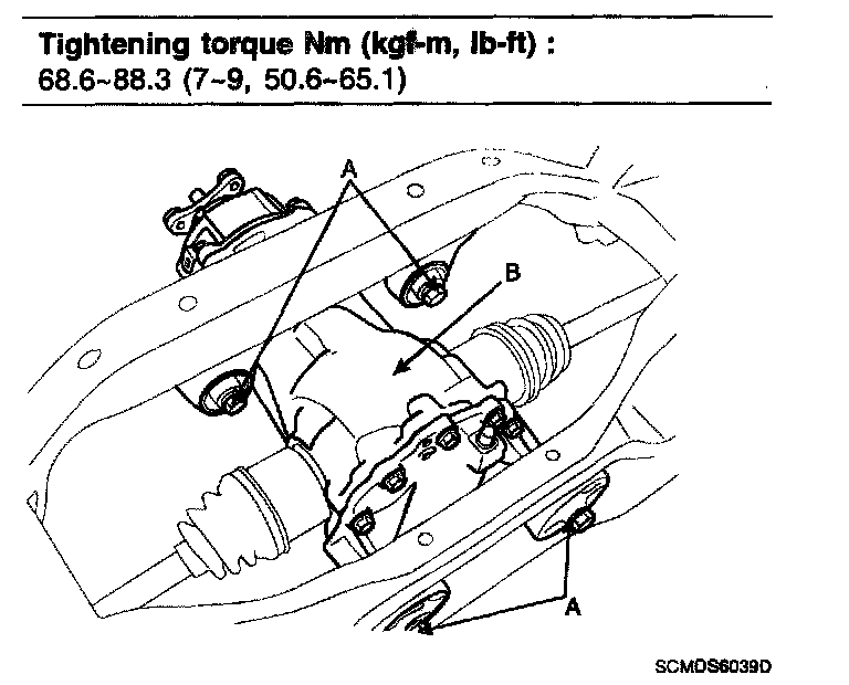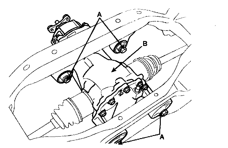 6. After loosen the differential mounting bolts (A), and remove the differential (B).
