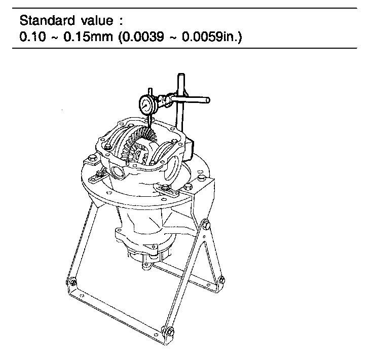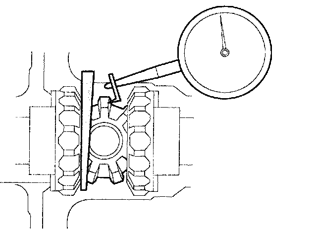 1) Fix the side gear with a wedge so it cannot move and measure the differential gear backlash with a dial indicator on the pinion gear.