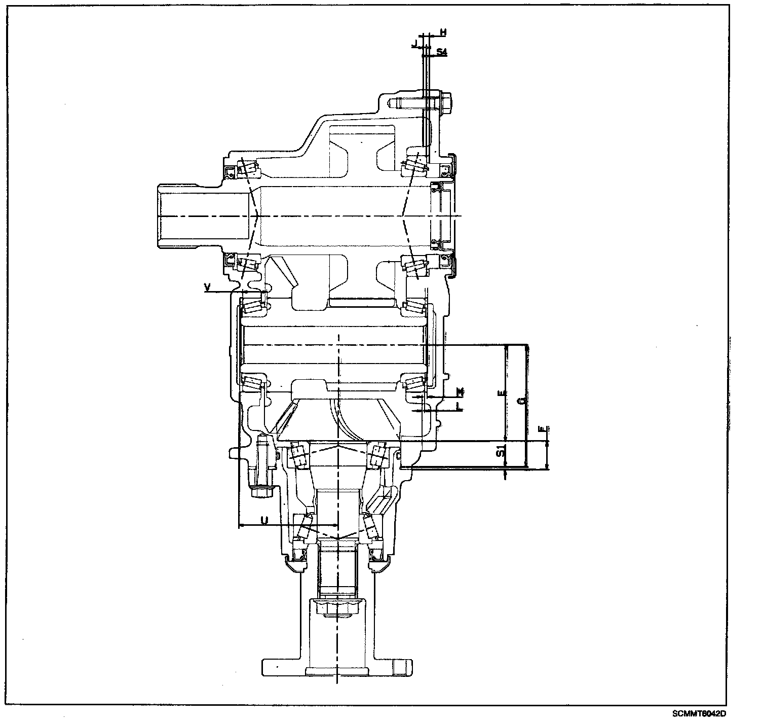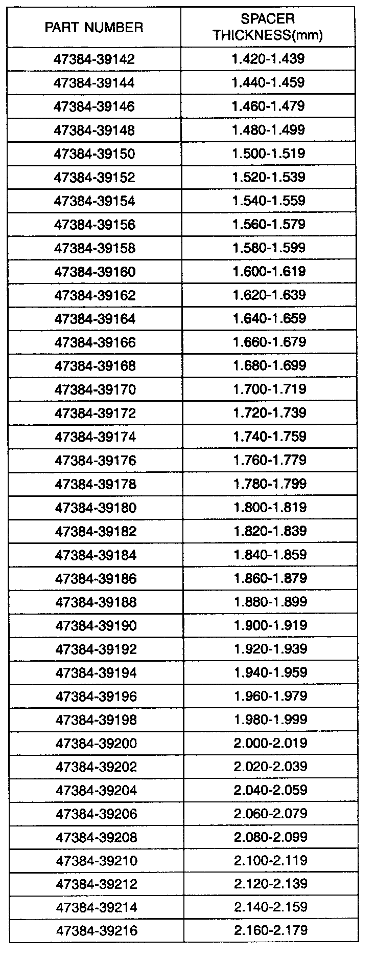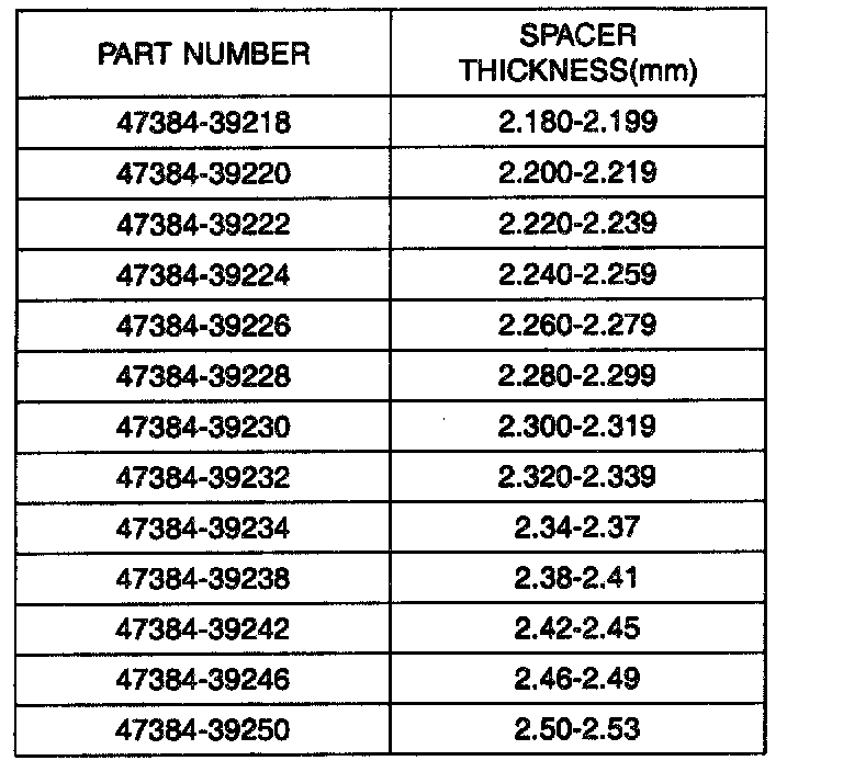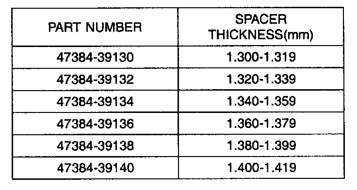 4. Select the spacer thickness from the chart below. Thickness S4= H-J+K. (K: Bearing preload = 0.07 to 0.11mm.)