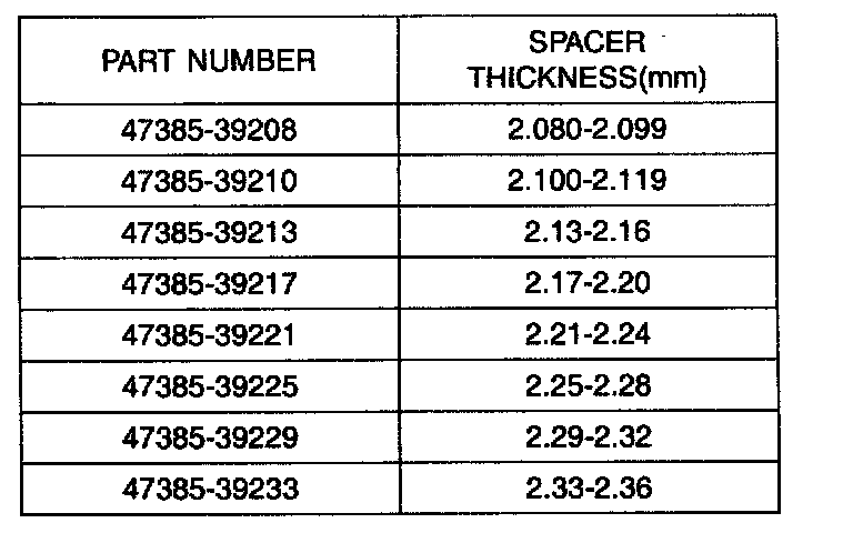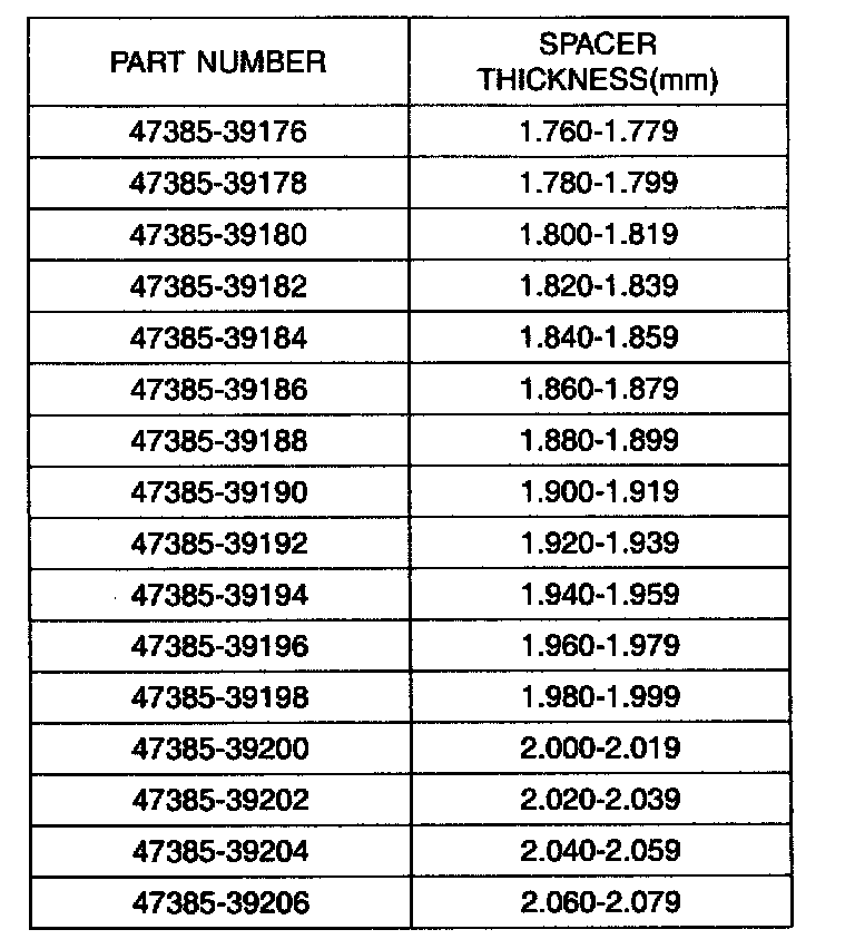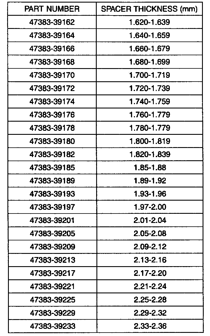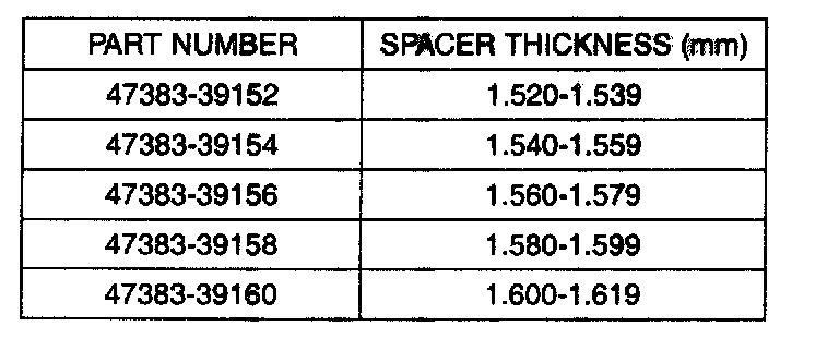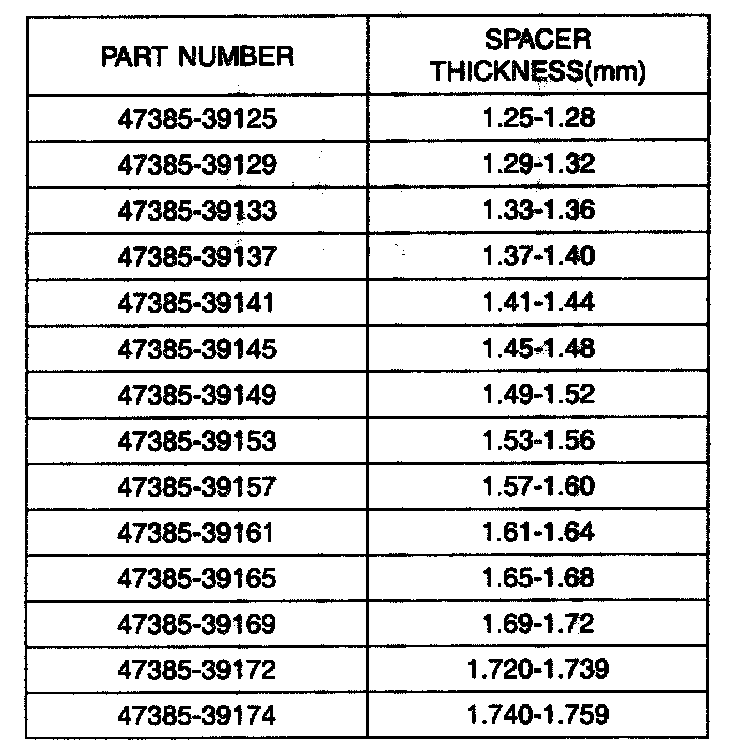 11. Select the spacer thickness from the chart above in the step 7. Thickness S3=M-L+(0.09 to 0.12mm) preload.