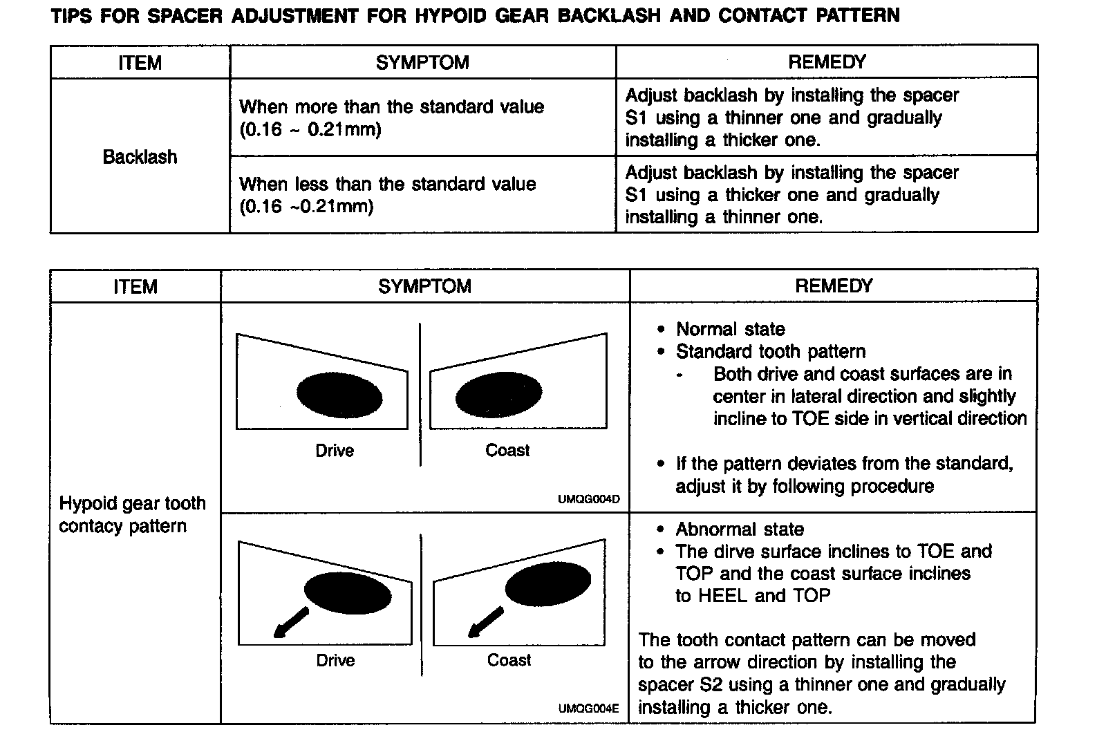 TIPS FOR SPACER ADJUSTMENT FOR HYPOID GEAR BACKLASH AND CONTACT PATTERN