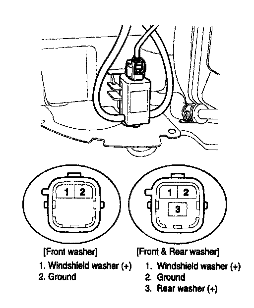 1. With the washer motor connected to the reservoir tank, fill the reservoir tank with water.