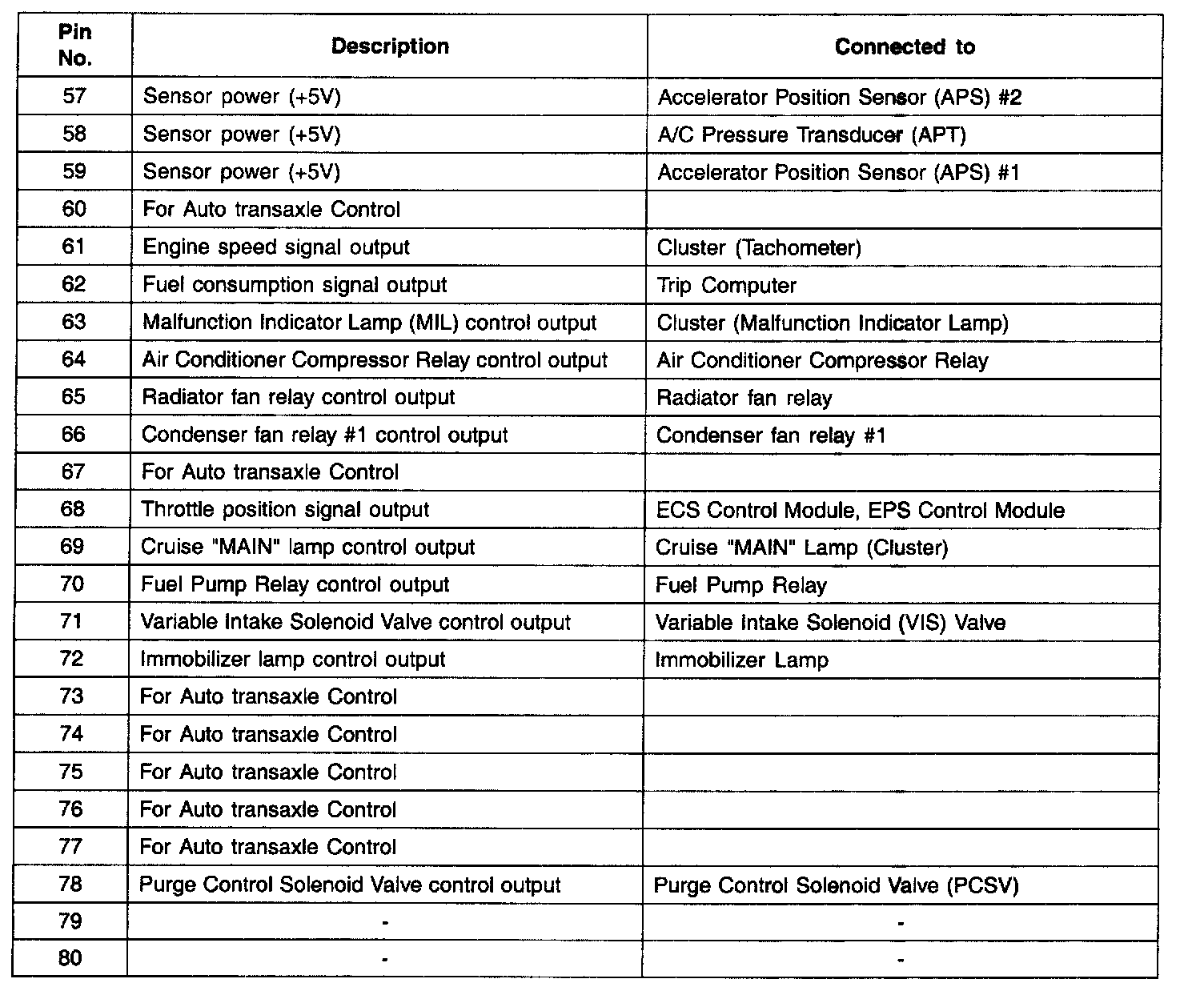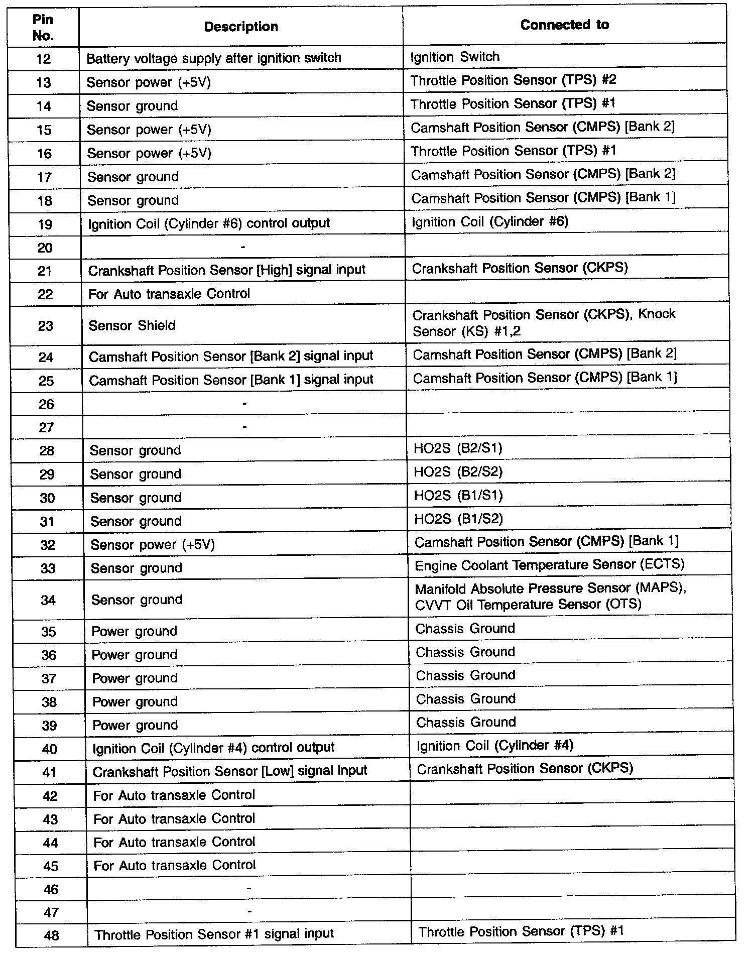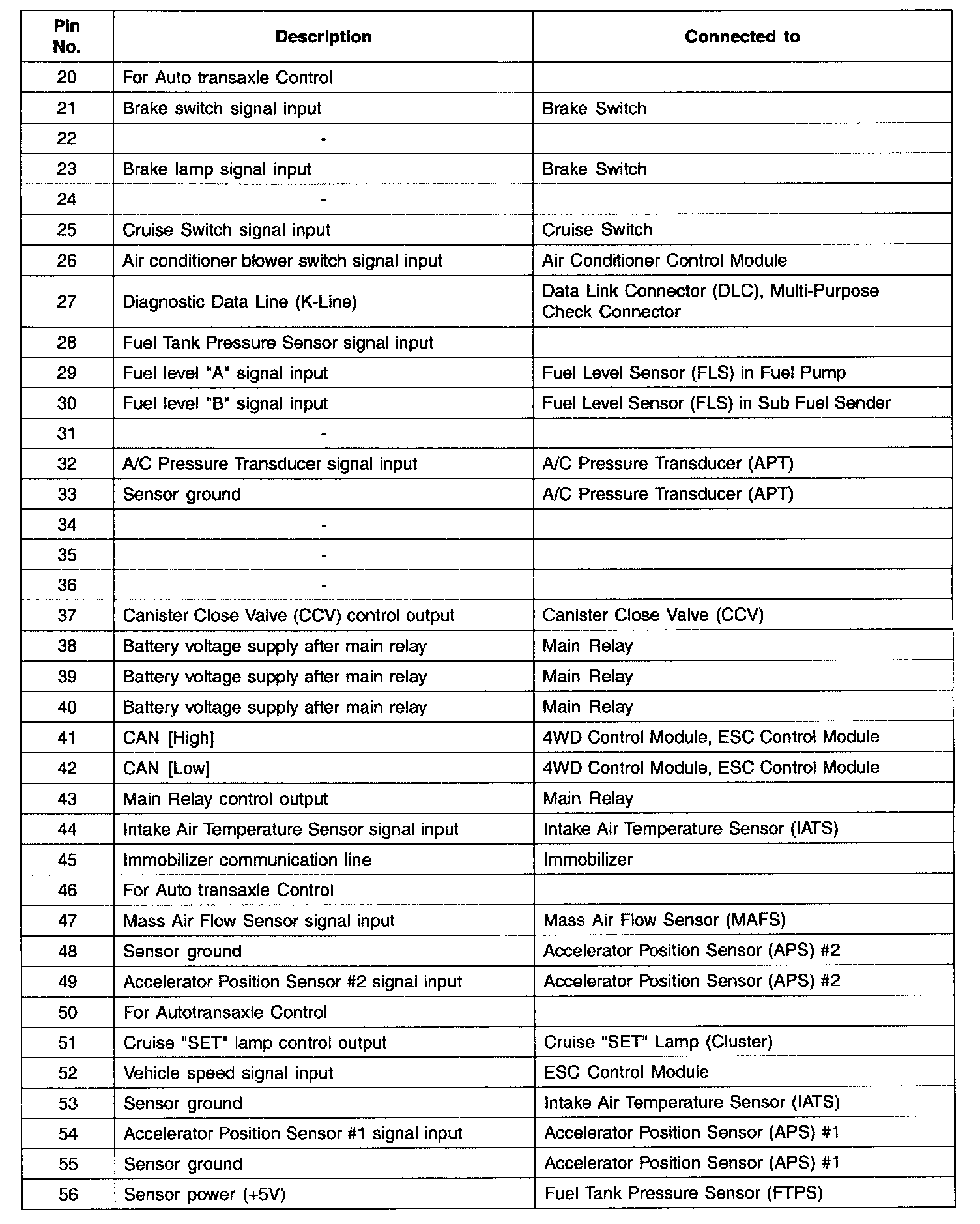 PCM Terminal Function - Connector (C130-A) Part 2: