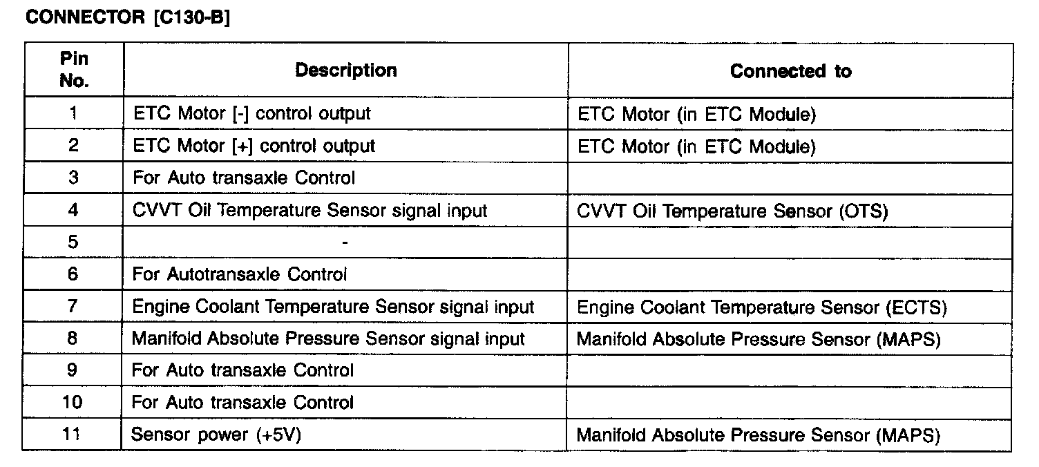 PCM Terminal Function - Connector (C130-B) Part 1: