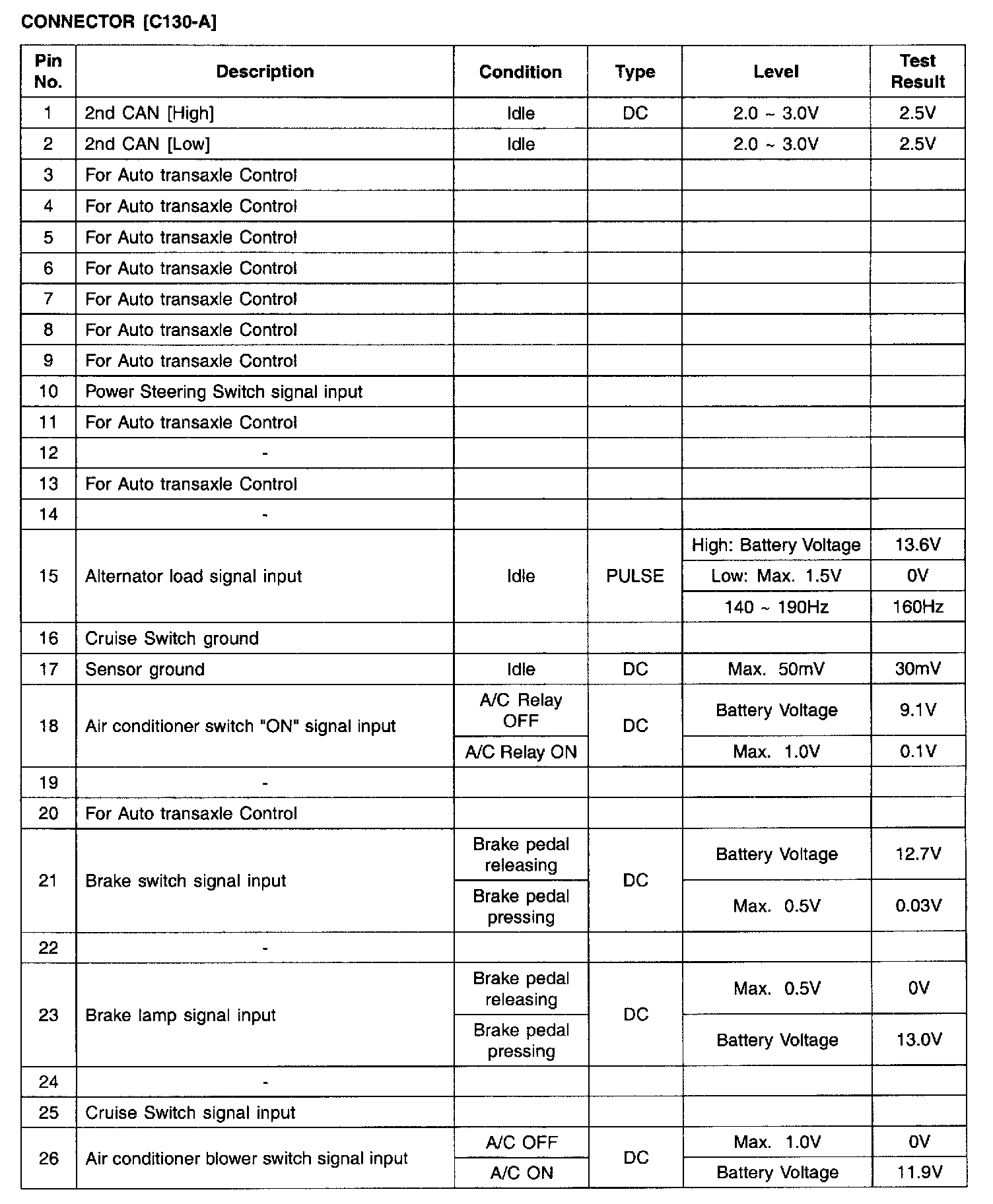 PCM Terminal Input/Output Signal - Connector (C130-A) Part 4: