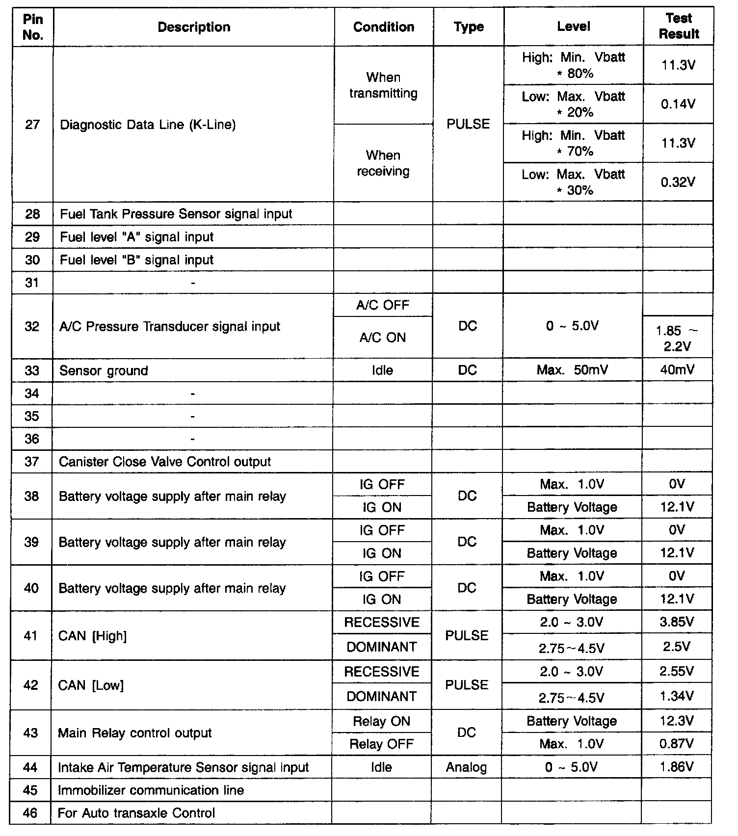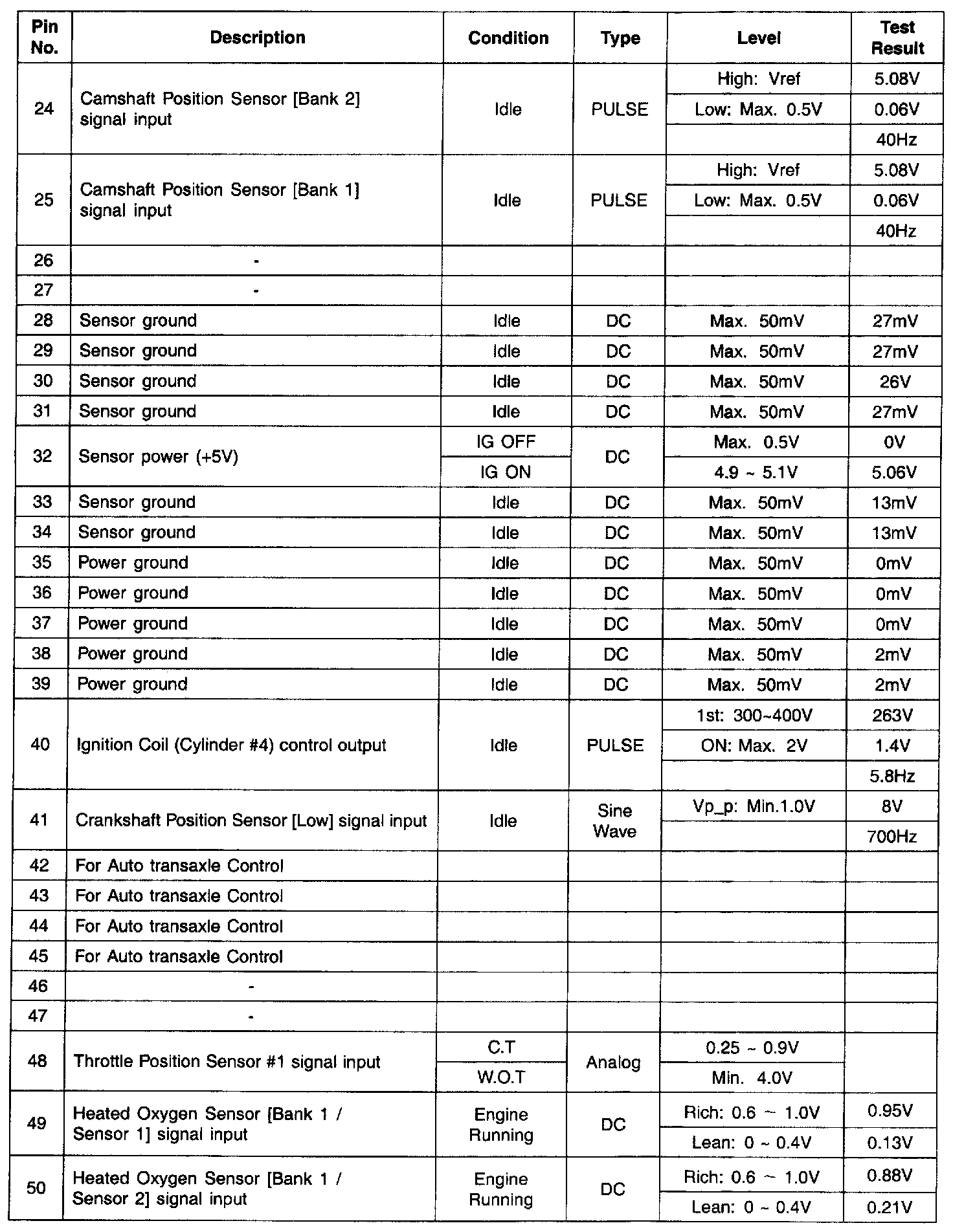 PCM Terminal Input/Output Signal - Connector (C130-B) Part 4: