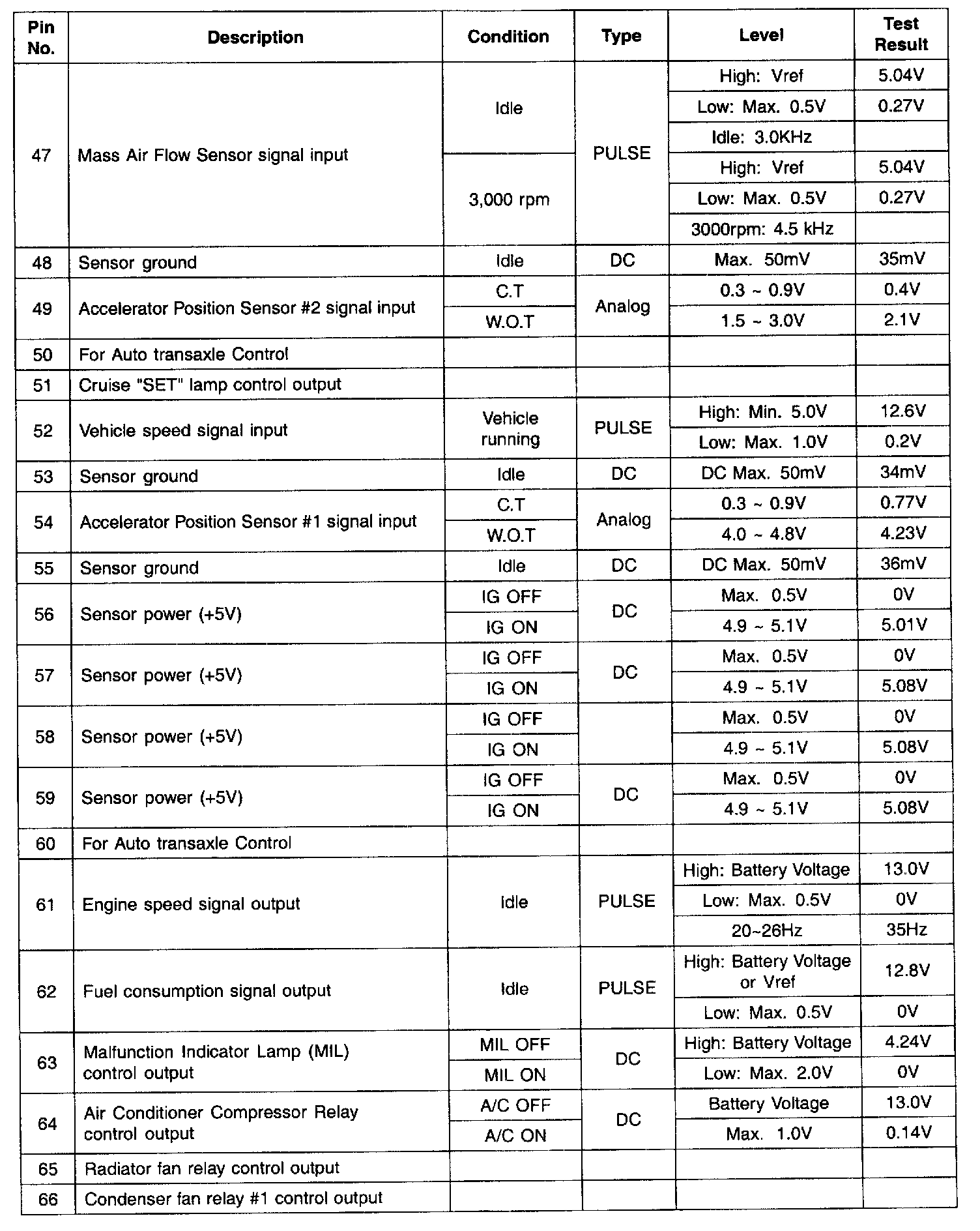 PCM Terminal Input/Output Signal - Connector (C130-B) Part 3: