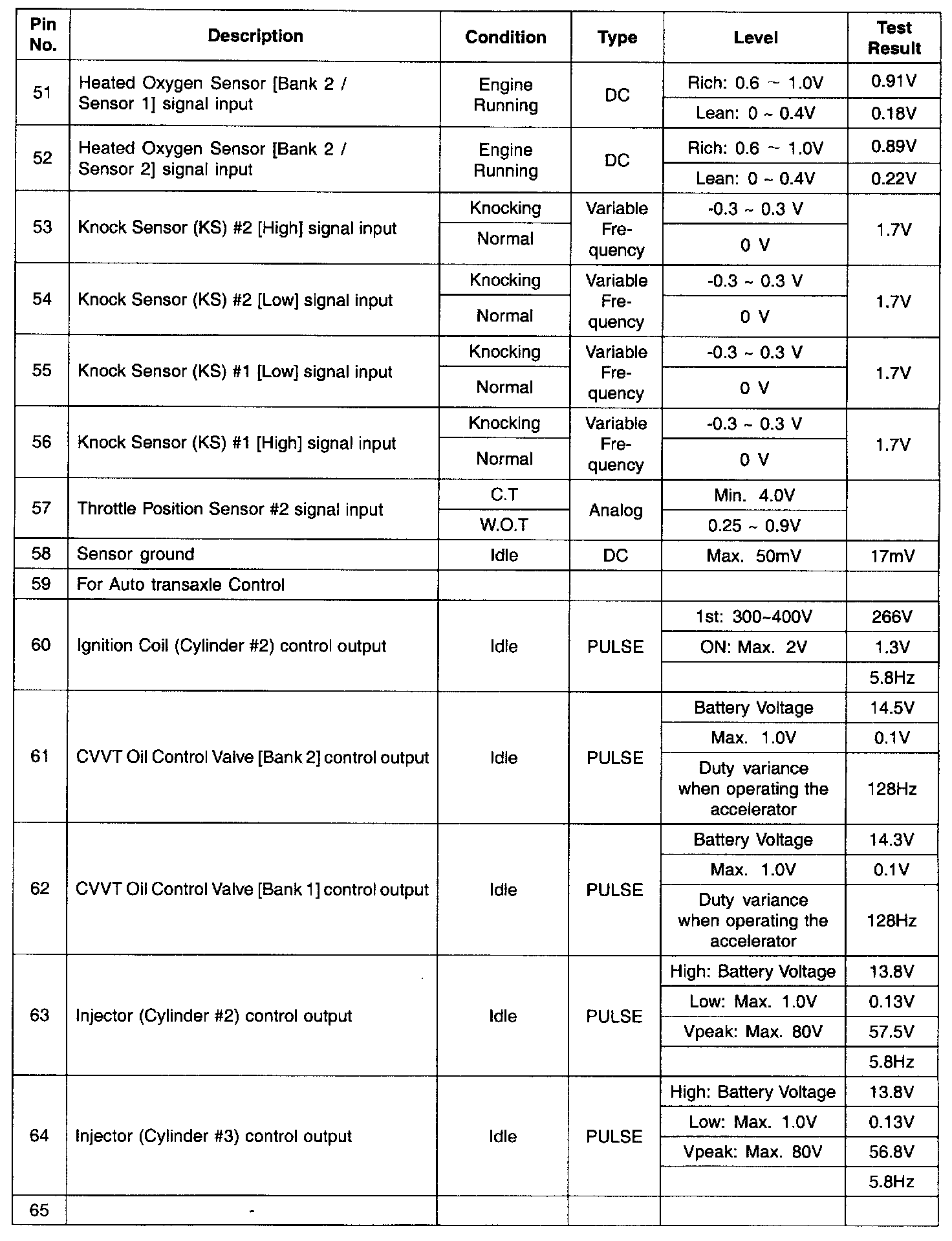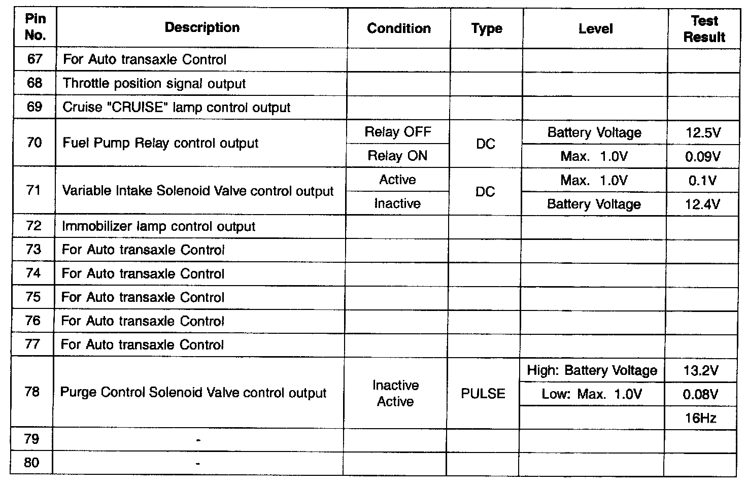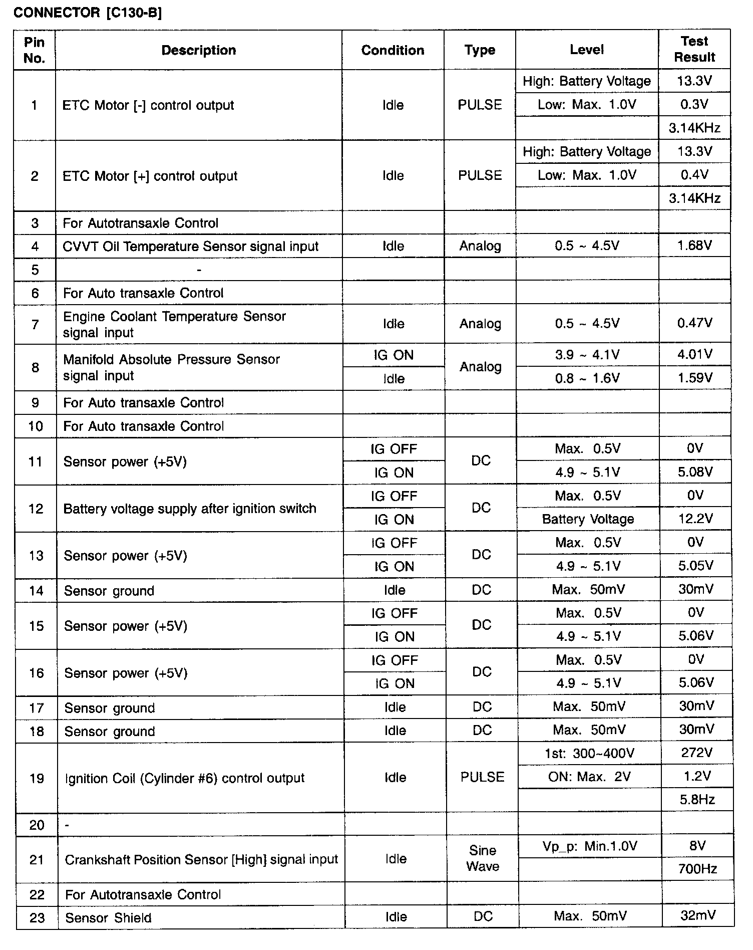 PCM Terminal Input/Output Signal - Connector (C130-B) Part 2: