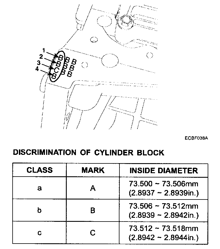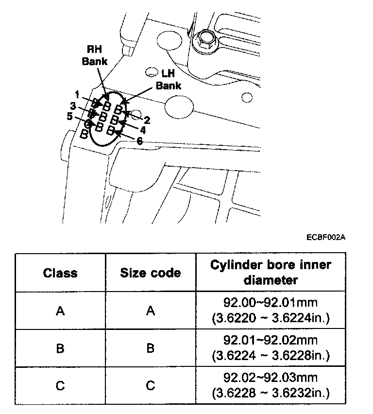 6. Check the cylinder bore size code on the cylinder block.
