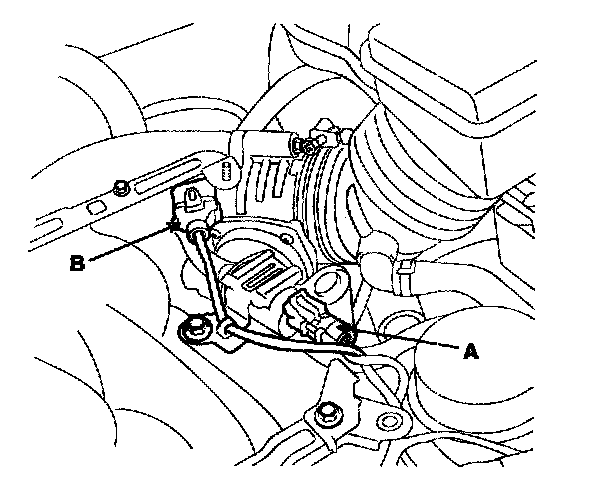 11) Disconnect ETC connector(A) and knock sensor connector(B).