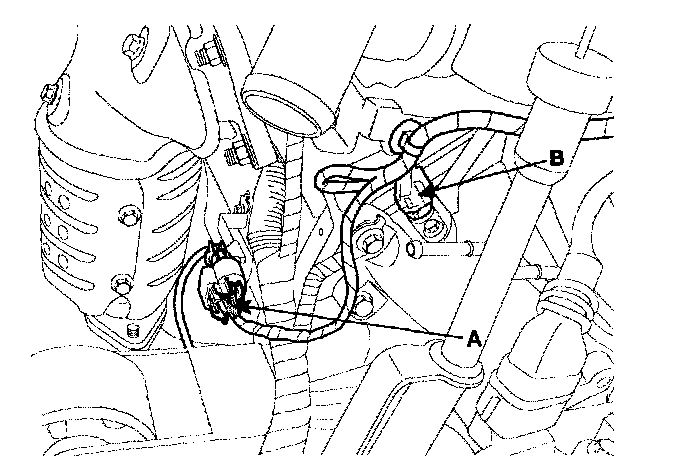 13) Disconnect LH rear oxygen sensor connector(A) and CPS connector(B).