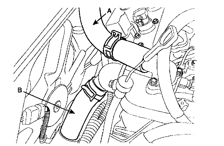 2) Disconnect the breather hose(B) from air cleaner hose.