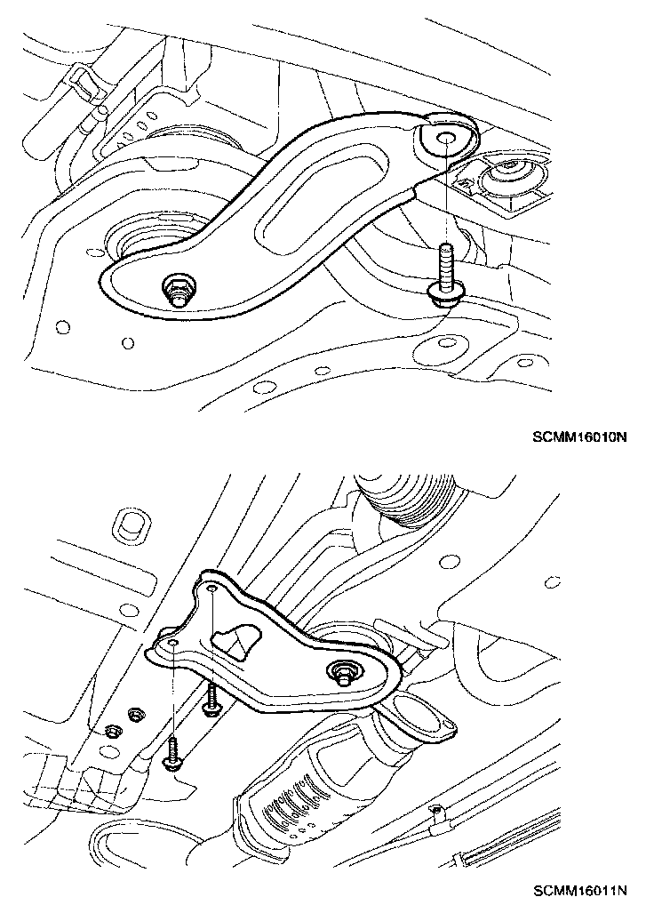 16. Remove the engine transaxle assembly under mounting bolts.