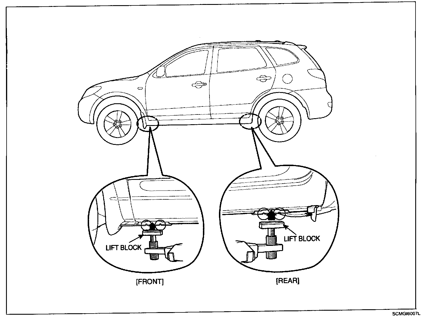 1. Place the lift blocks under the support points as shown in the illustration.