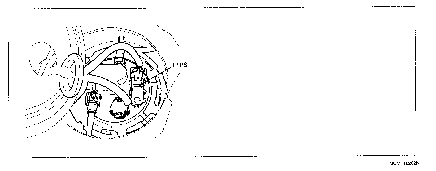The evaporative emission control system prevents hydrocarbon vapors from escaping from the fuel tank into the atmosphere where they could form photochemical smog. Gasoline vapors are collected in the charcoal canister. The Fuel Tank Pressure Sensor (FTPS) is installed on fuel pump assembly and is an integral part of the evaporative monitoring system. The PCM monitors the FTPS signal to detect vacuum decay and excess vacuum. The FTPS measures the difference between the air pressure inside the fuel tank and atmospheric air pressure to check the purge control solenoid valve operation and for leak detection in the evaporative emission control system by monitoring pressure and vacuum levels in the fuel tank during the purge control solenoid valve operating cycles.