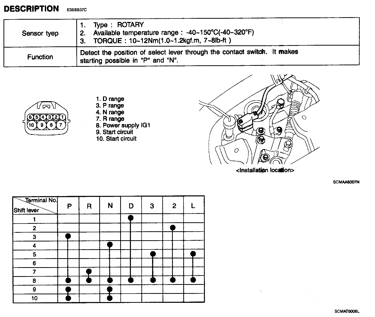 Transmission Position Sensor/Switch: Description and Operation