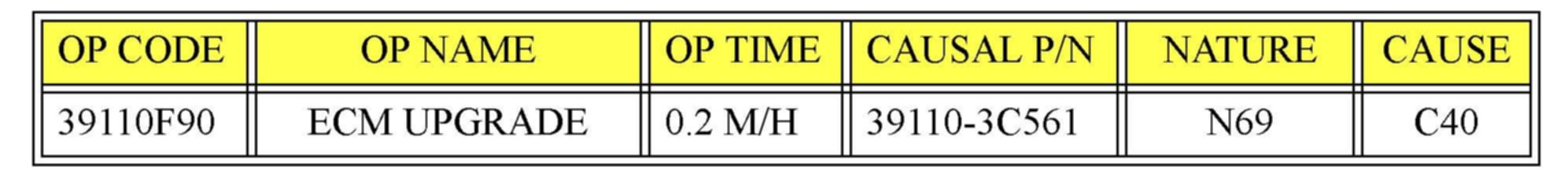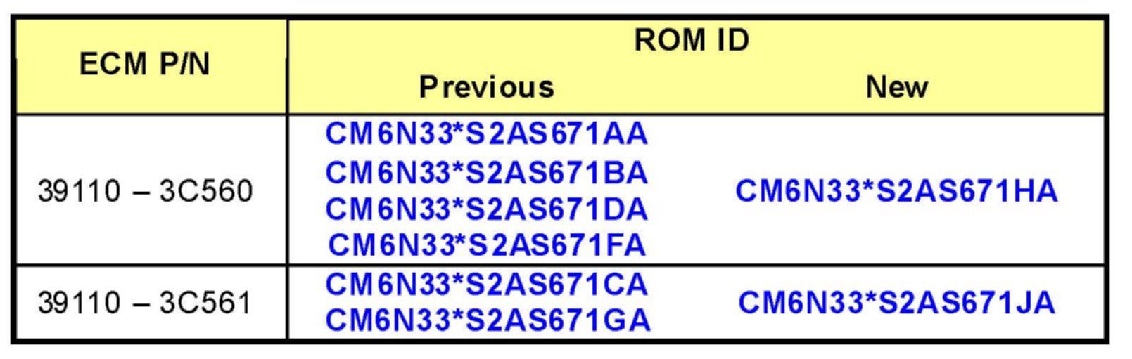 To verify the vehicle is affected, check the version of the vehicle's control unit ROM ID with reference to the ROM ID Information Table below before attempting to update the control unit software.