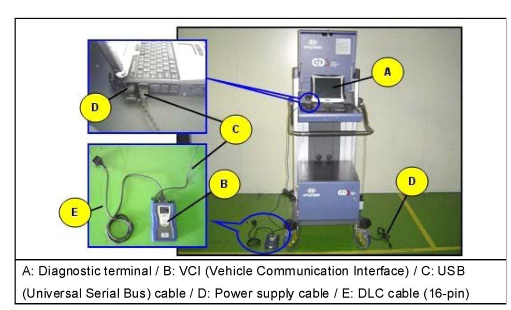 2. Connect the USB cable between the VCI and the diagnostic terminal.