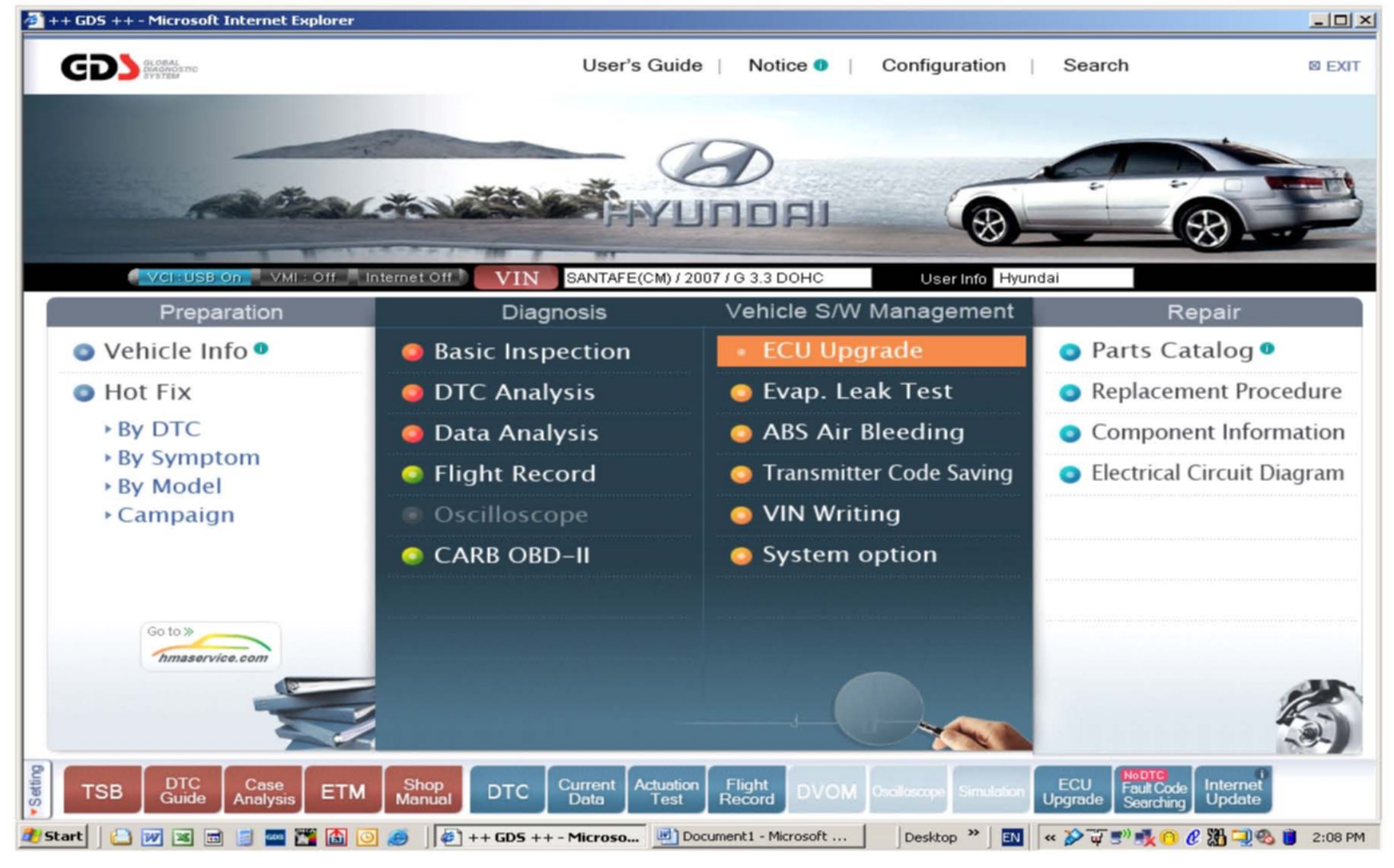 2. Turn off all lamps (Do not leave head lamp switch in auto mode) and all accessories (including heater, A/C, blower, radio, seat warmer, defroster, etc.) to make certain the battery will not be discharged during update.