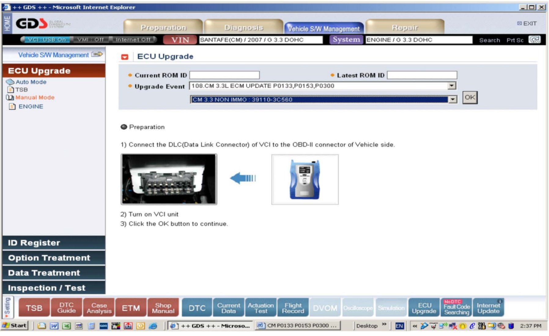 4. Be careful not to disconnect any cables connected to the vehicle or scan tool during update.