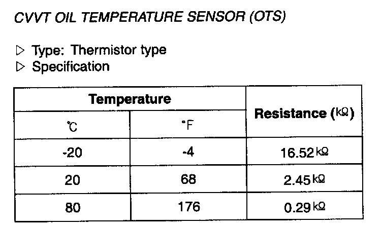 CVVT Oil Temperature Sensor (OTS) - Specification: