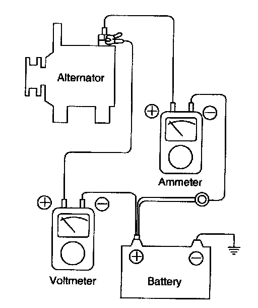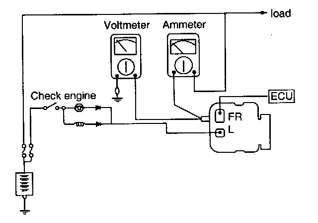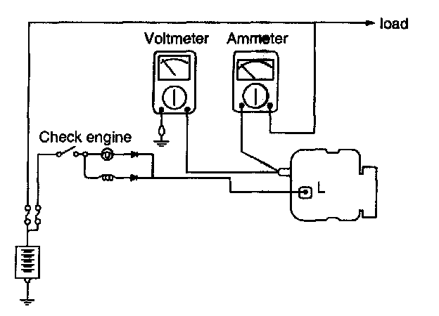 3. Run the engine at a speed of about 2,500 rpm and read the voltmeter when the alternator output current drops to 10 A or less