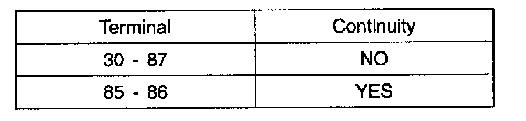 Check for continuity between terminals 30 and 87.