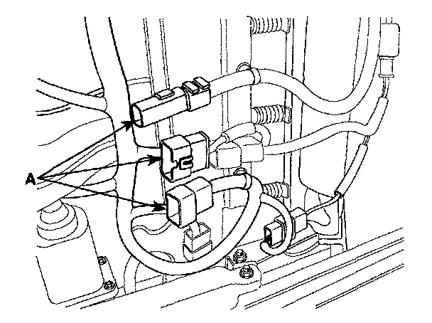 3. Disconnect the connector (A), and remove the seat assembly.