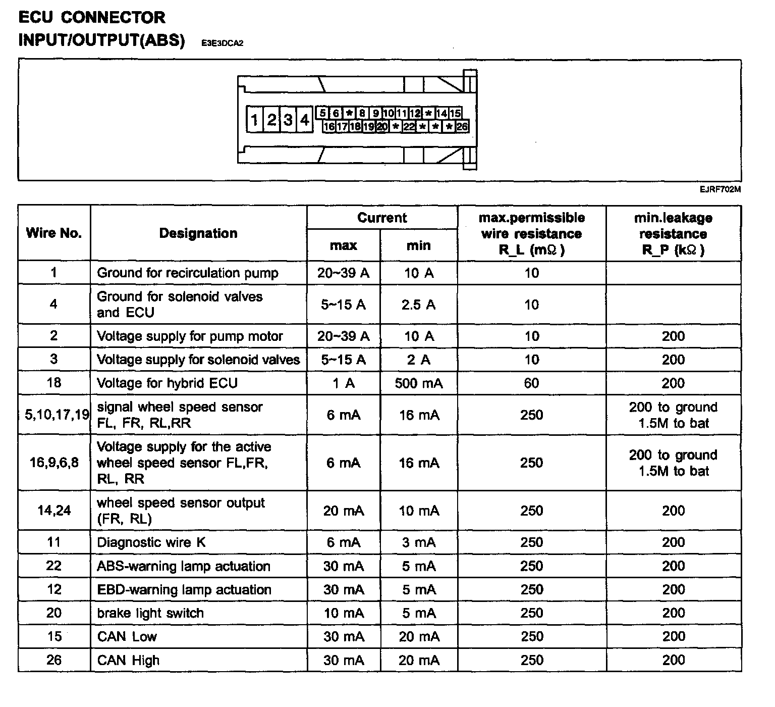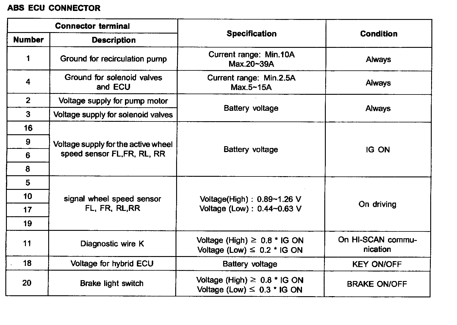 ECU CONNECTOR INPUT/OUTPUT (ABS):